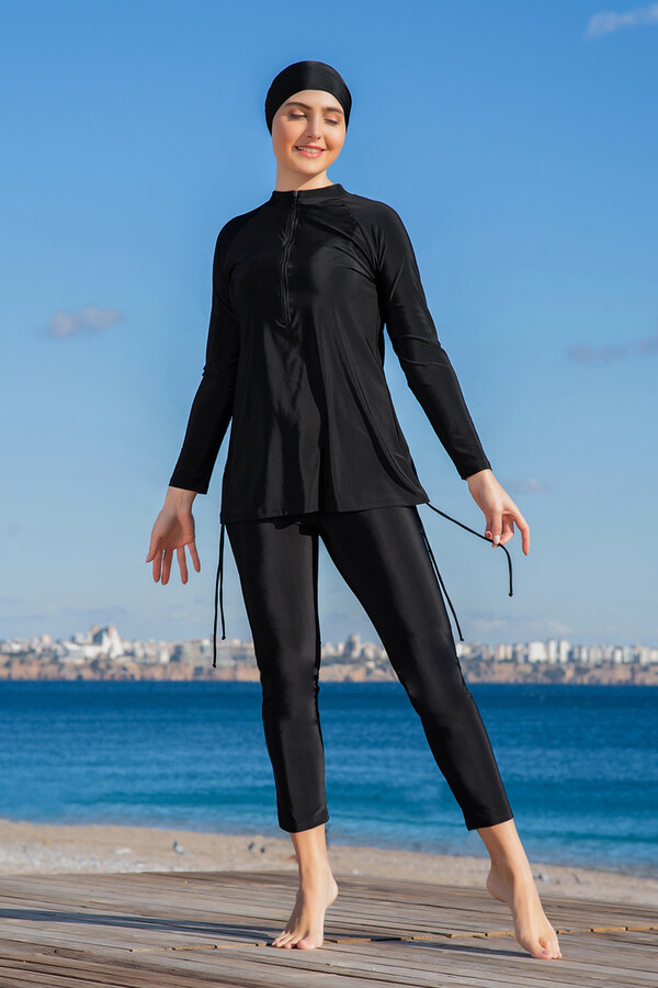 Convertible Full Coverage Modest Swimsuit With Dual Tights 2413-1 Black