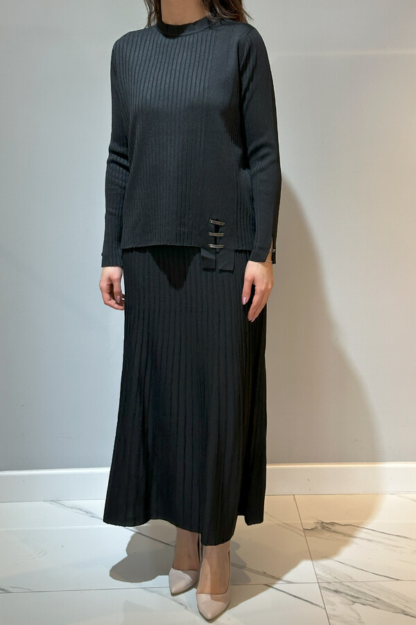 Accessory-Detail Ribbed Knit Skirt Set 35038 Black