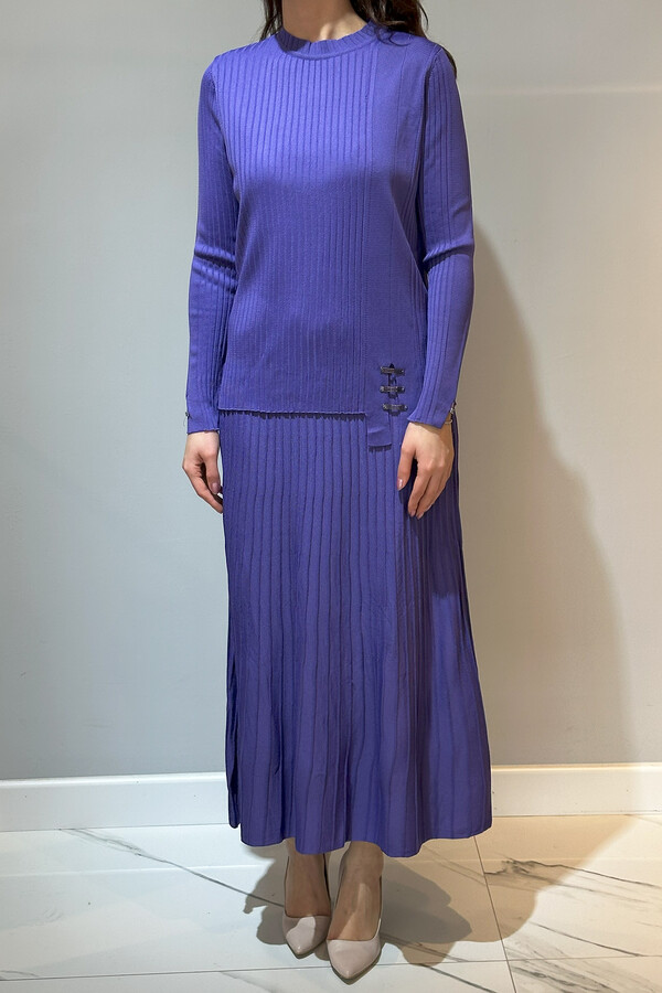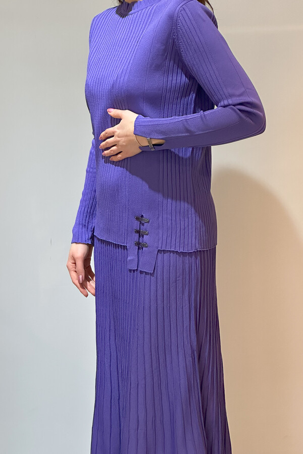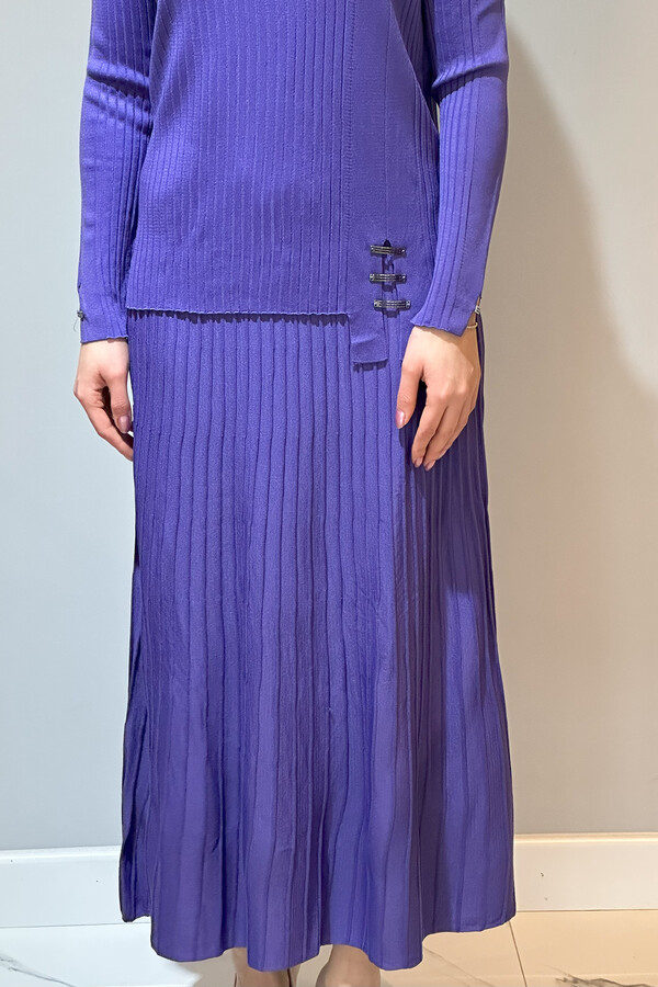 Accessory-Detail Ribbed Knit Skirt Set 35038 Purple