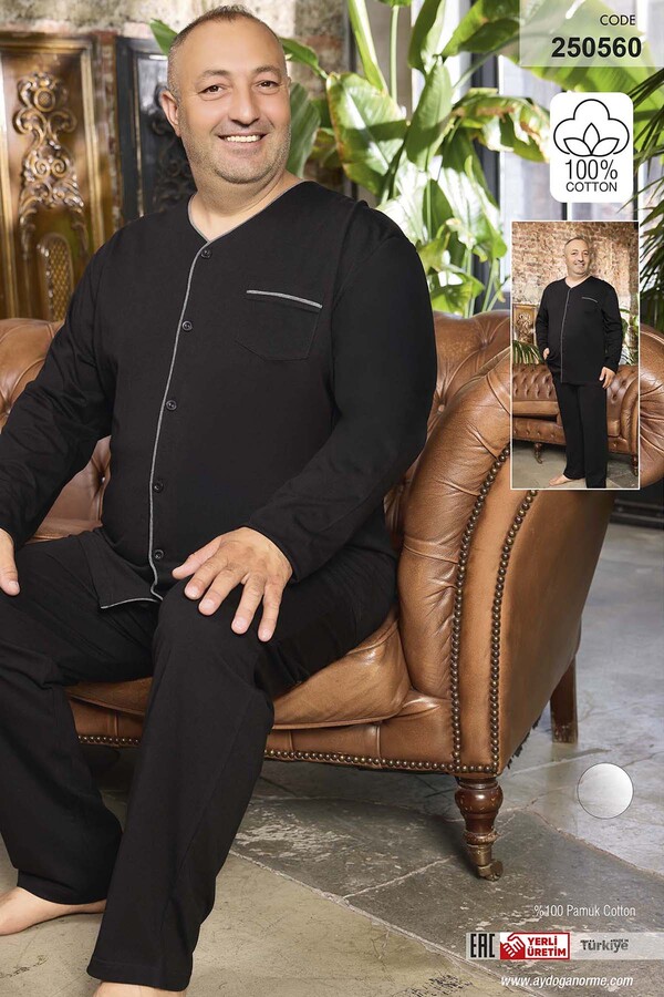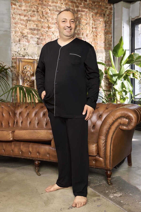 Büyük Beden Erkek Aydoğan Pamuk Uzun Kol Pijama Takımı 250560 Siyah01