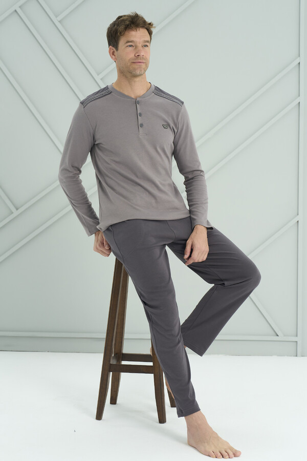 Erkek Penye Uzun Kol Pijama Takımı 2203 Gri