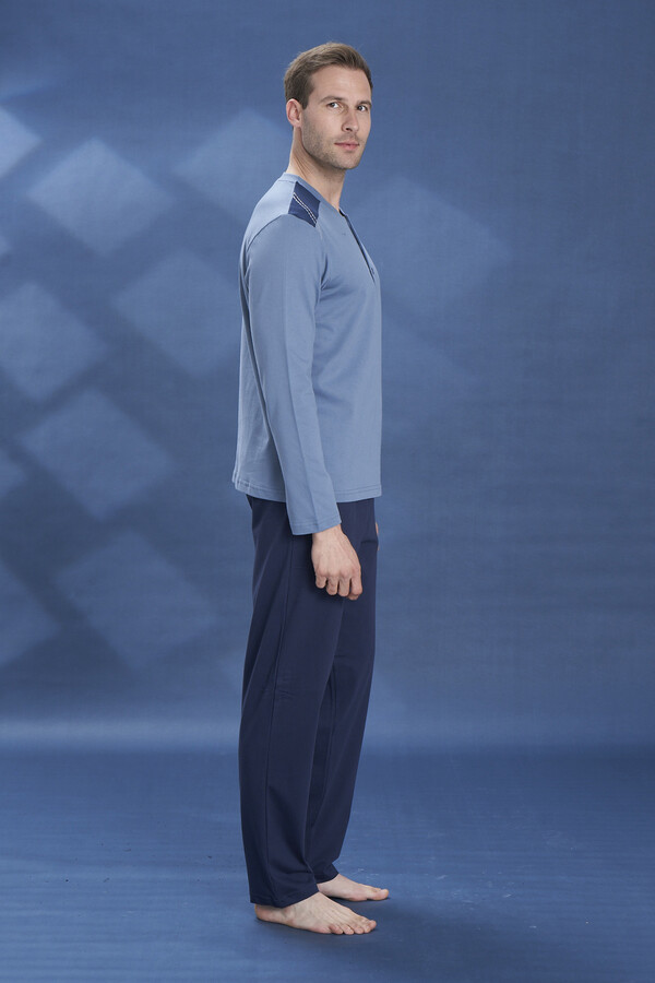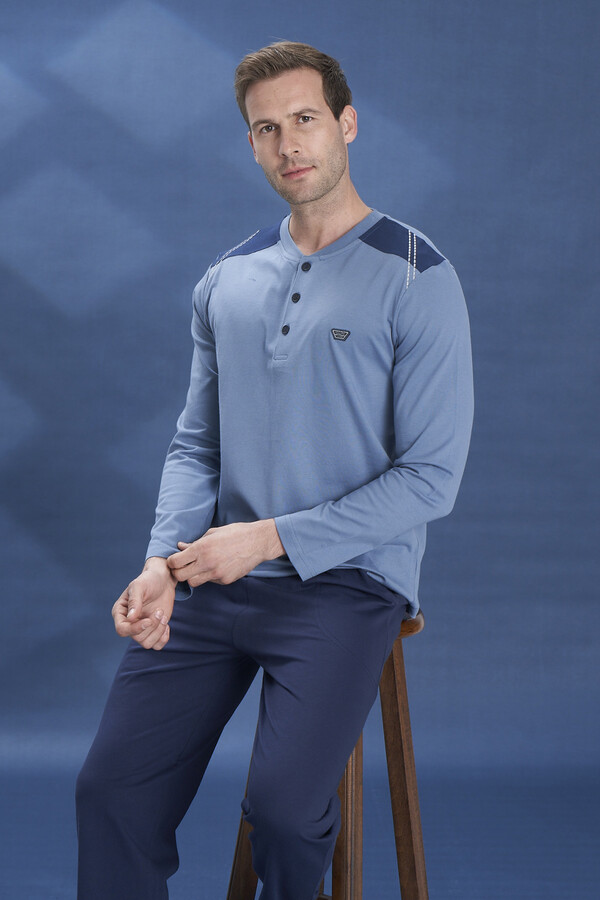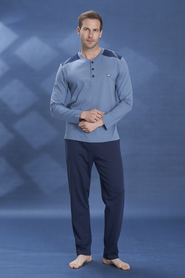 Erkek Penye Uzun Kol Pijama Takımı 2104 İndigo