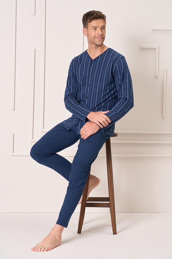 Erkek Penye Uzun Kol Pijama Takımı 2144 Lacivert01