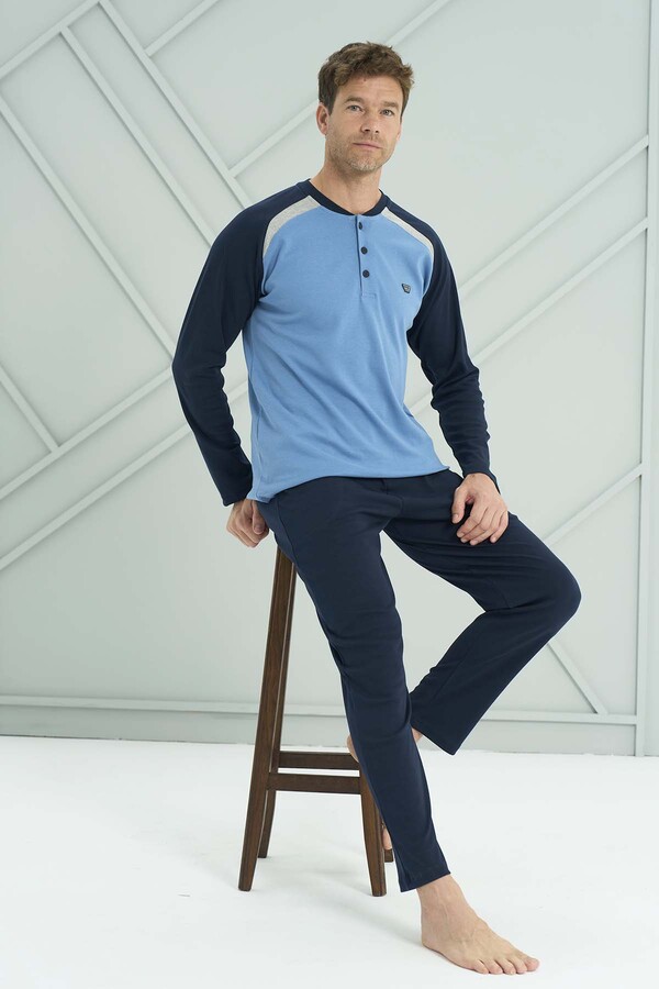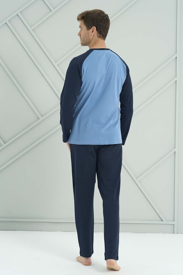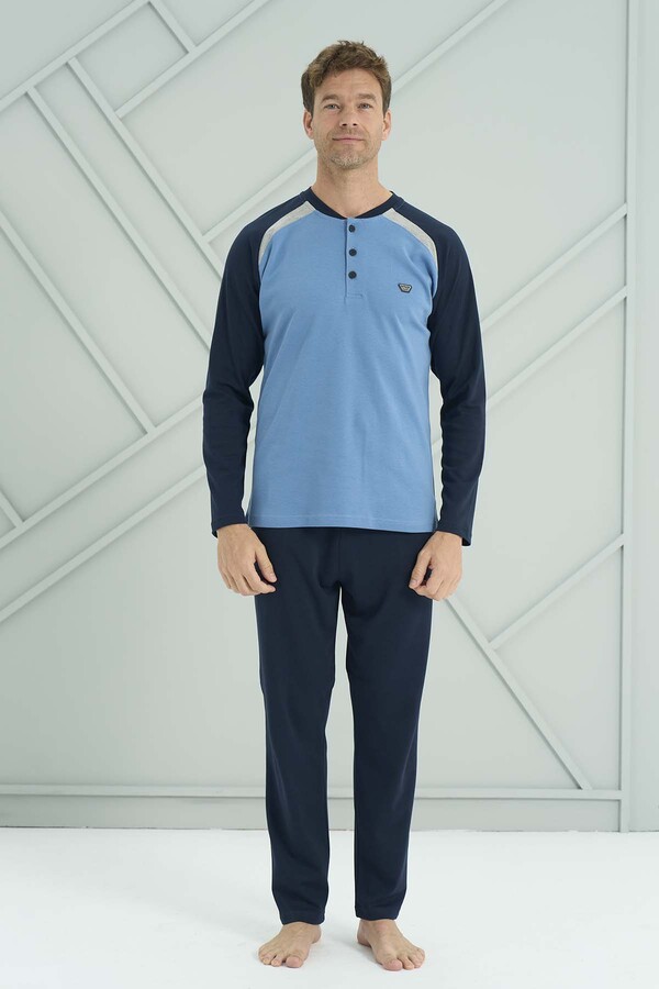 Büyük Beden Erkek Penye Uzun Kol Pijama Takımı 2211 İndigo02