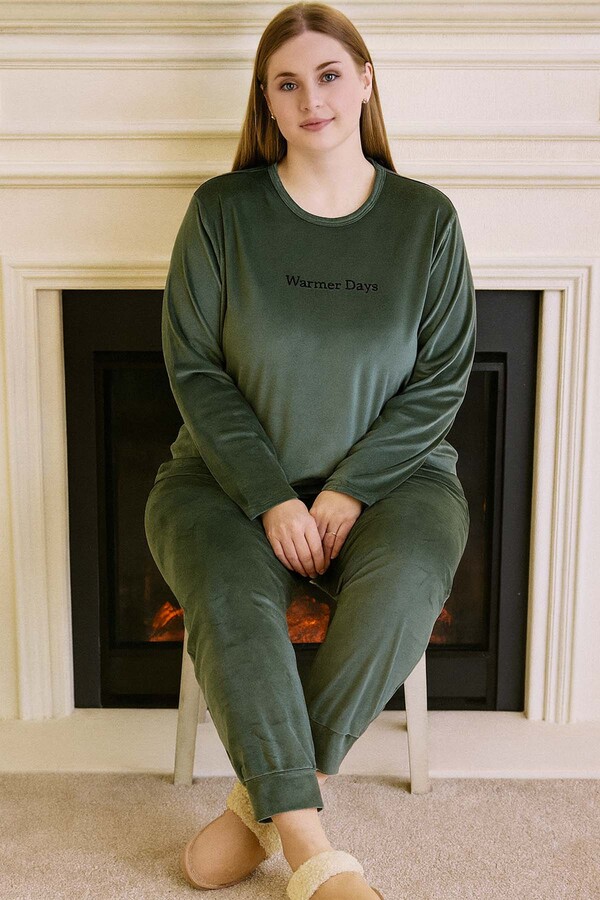 Büyük Beden Kadın Kadife Kumaş Pijama Takımı 13212 Mint