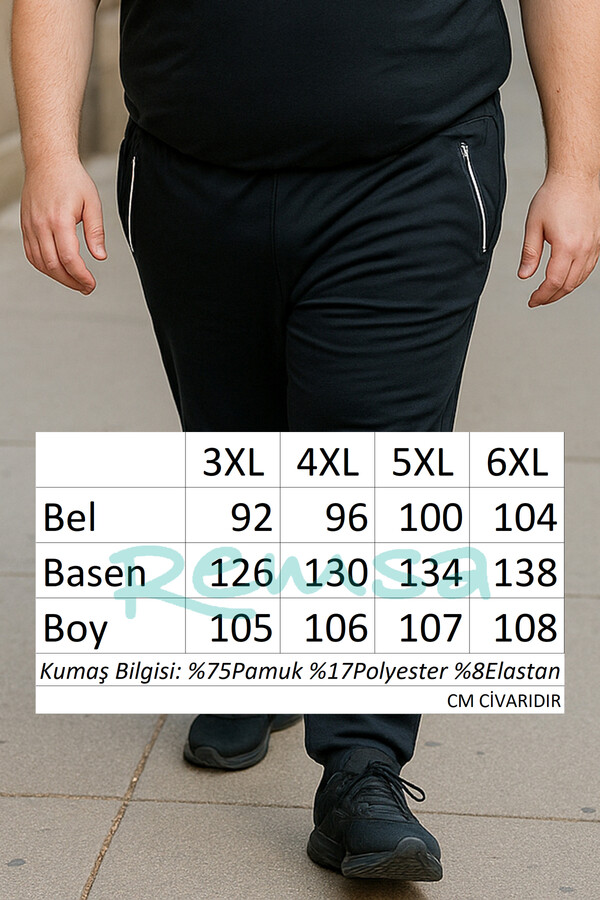 Büyük Beden Pamuk Dokulu Erkek Eşofman Altı 24702 Siyah
