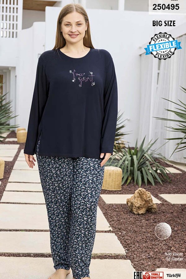 Büyük Beden Viskon Kadın Uzun Kol Pijama Takımı 250495 Laci02