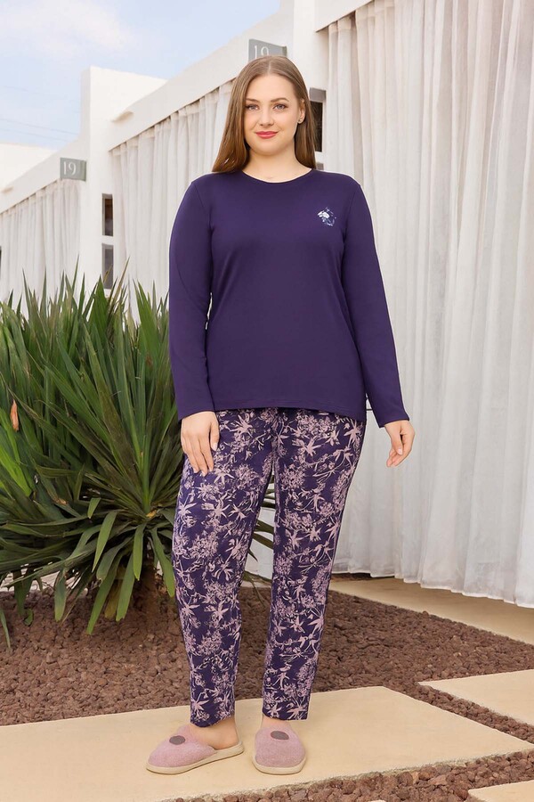 Büyük Beden Kadın Yazılı Uzun Kol Pijama Takımı 250499 Mor01