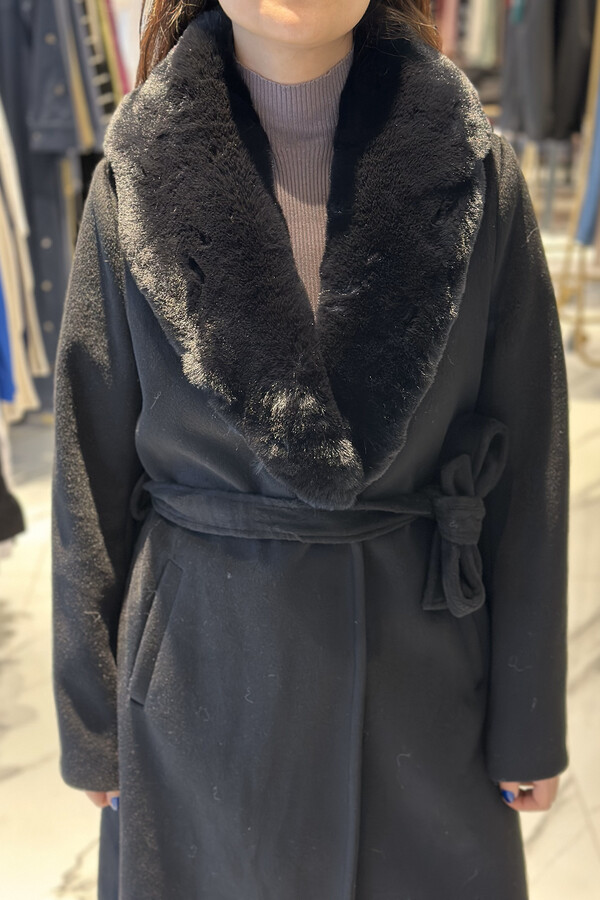 Çift Yakalı Kaşe Kaban 20100 Siyah