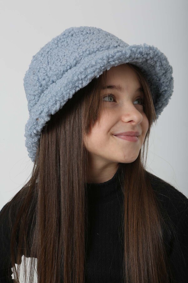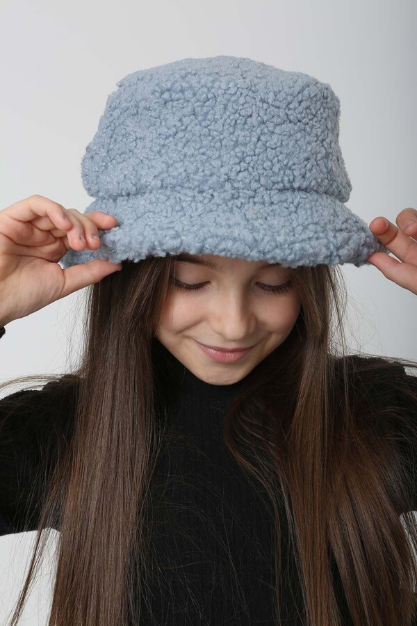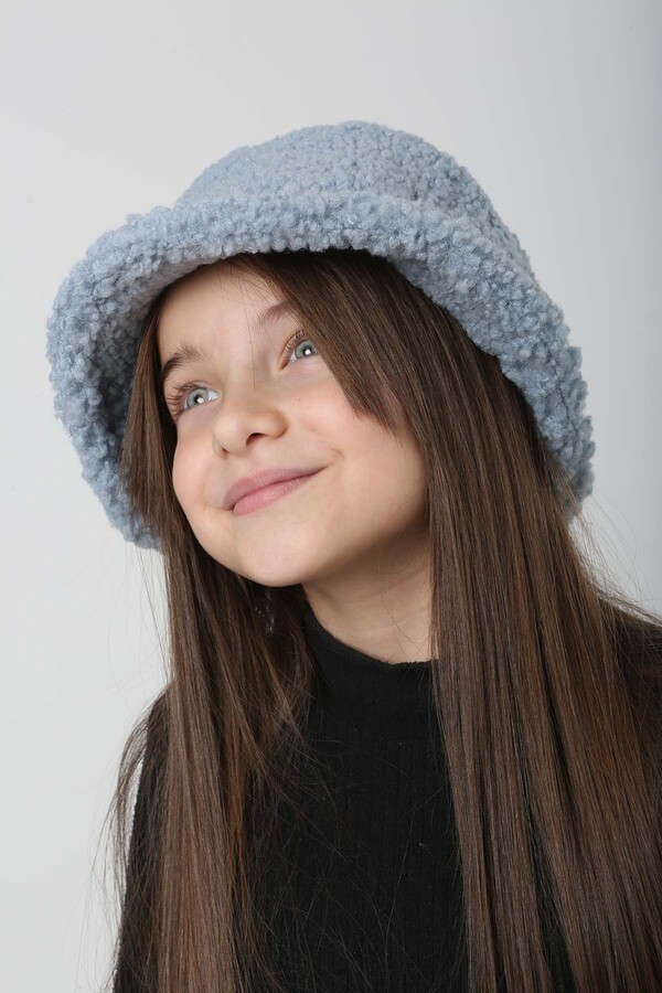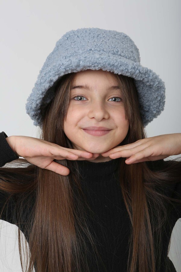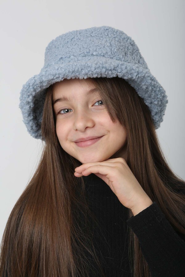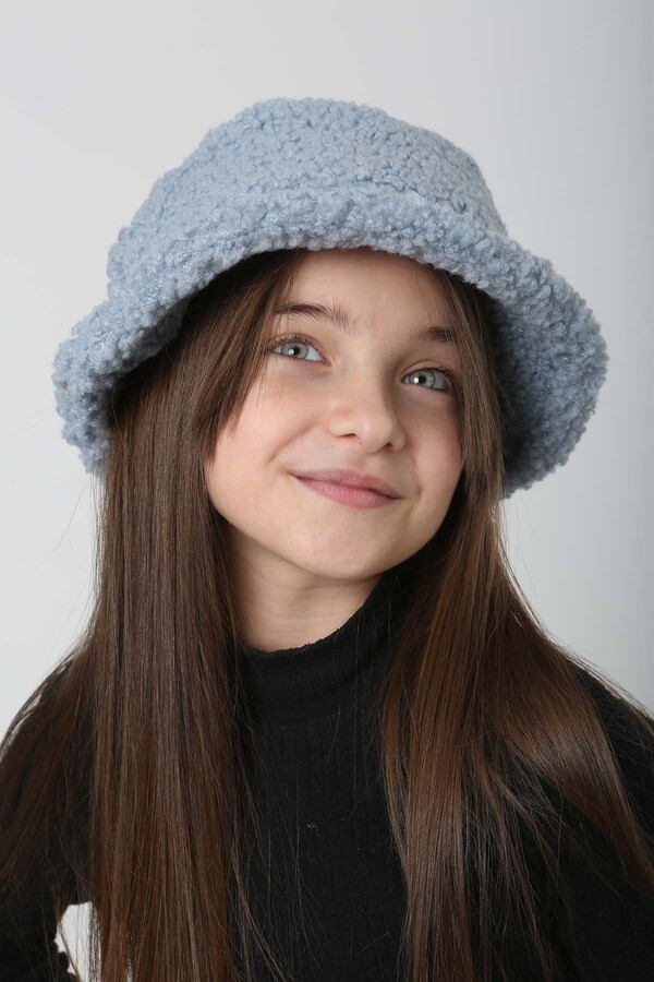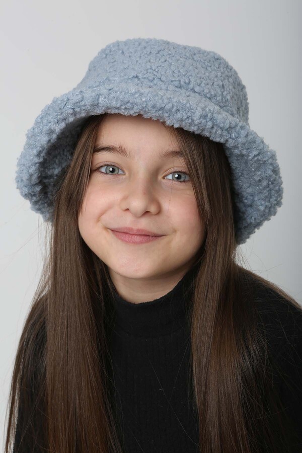 Çocuk Kıvırcık Peluş Bucket Şapka RKŞ-Ç-10 Mavi