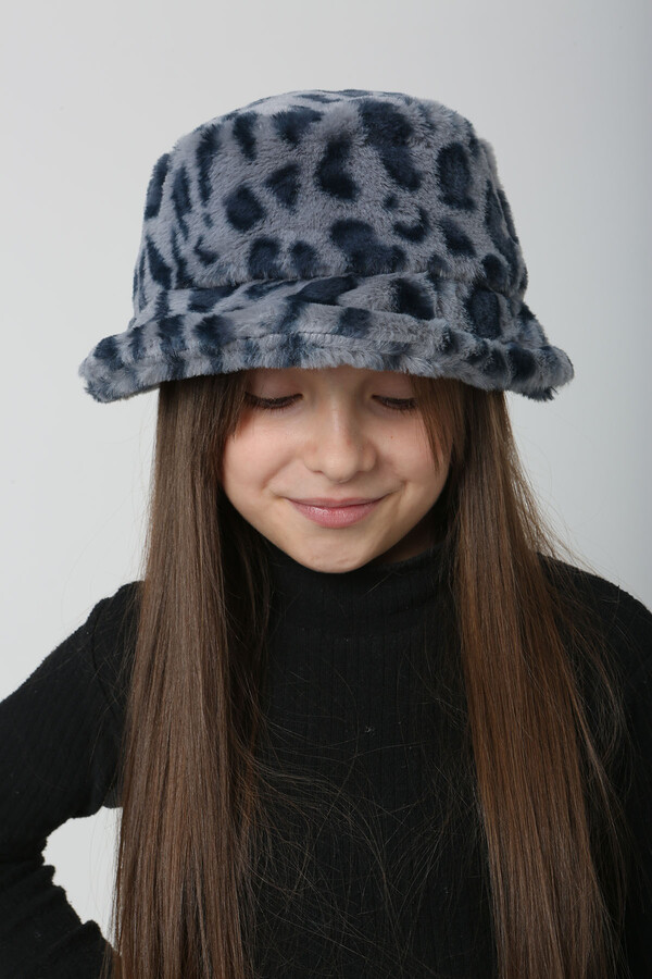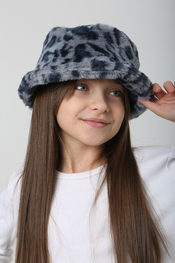 Children's Plush Bucket Hat RKŞ-Ç-01 Blue Leopard