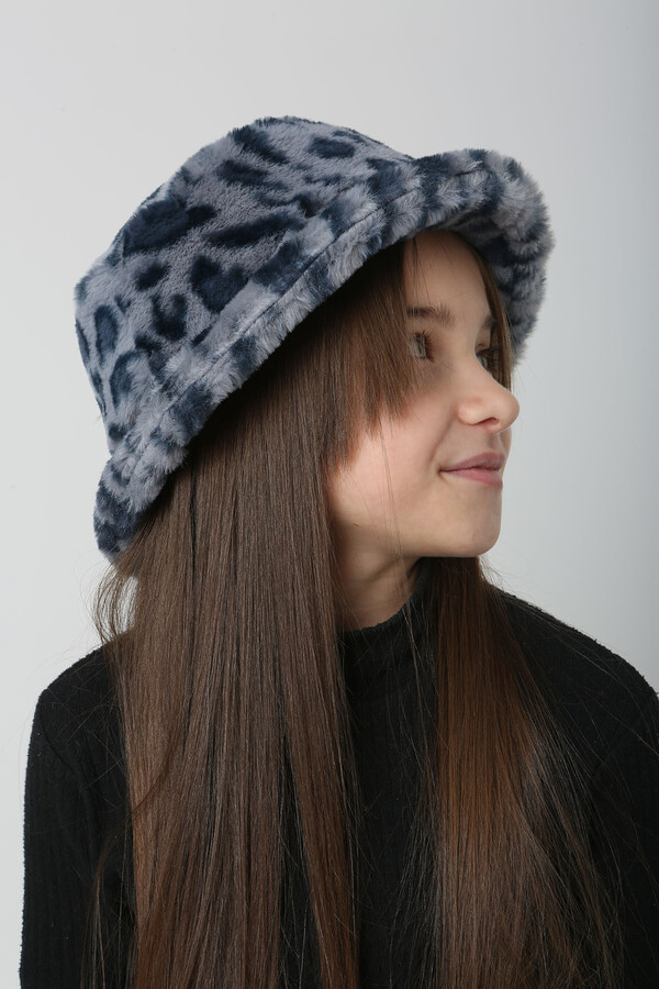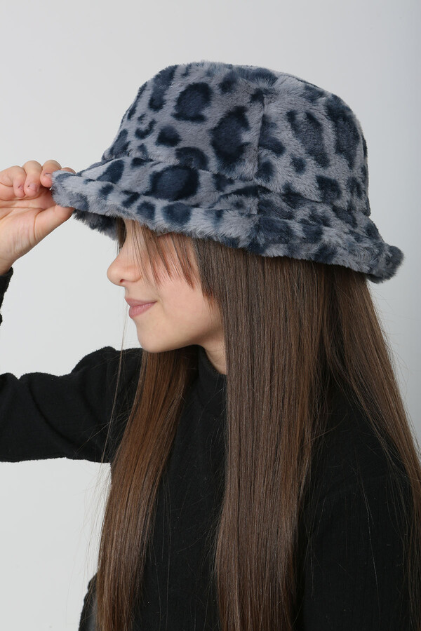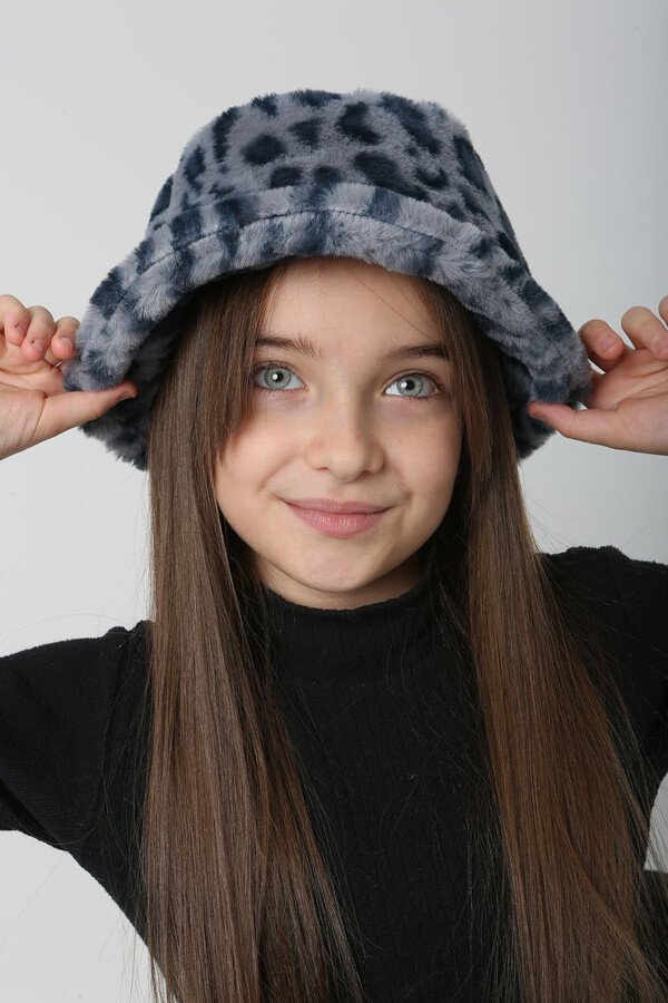 Çocuk Peluş Bucket Şapka RKŞ-Ç-01 Mavi Leopar