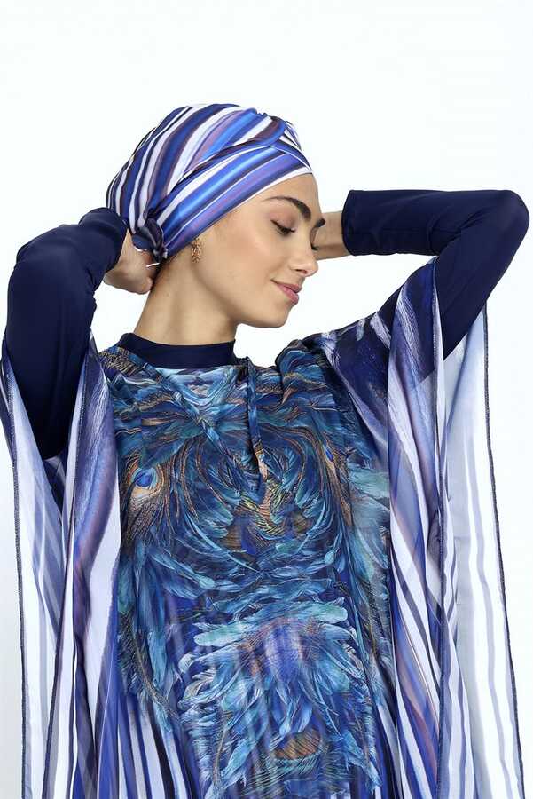 Tavus isimli şahane ürünümüz yeni sezonda fazla ilgi buluyor. Lacivert ve mavinin farklı renklerini içine alan hoş bir tarza sahip. Likralı esnek yapısı ile başı kavrar. Rahat ve konforlu kullanım sunar. Farklı mayo ürünlerinin üzerine tercih edebilirsiniz. Özenle hazırlanmış şekli büyük bir beğeni ile kullanma ayrıcalığı sunar.