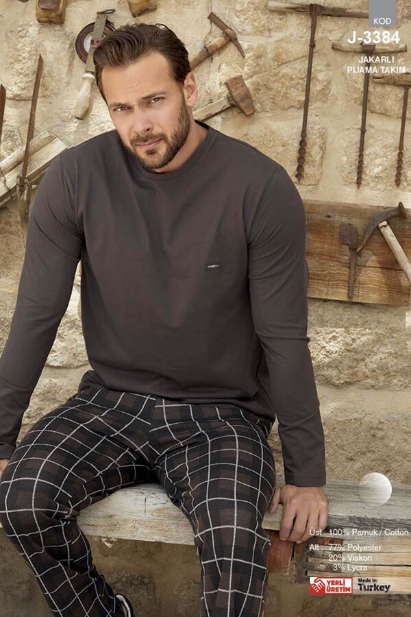 Erkek Aydoğan Jakar Uzun Kol Pijama Takımı 3384 Kahverengi01