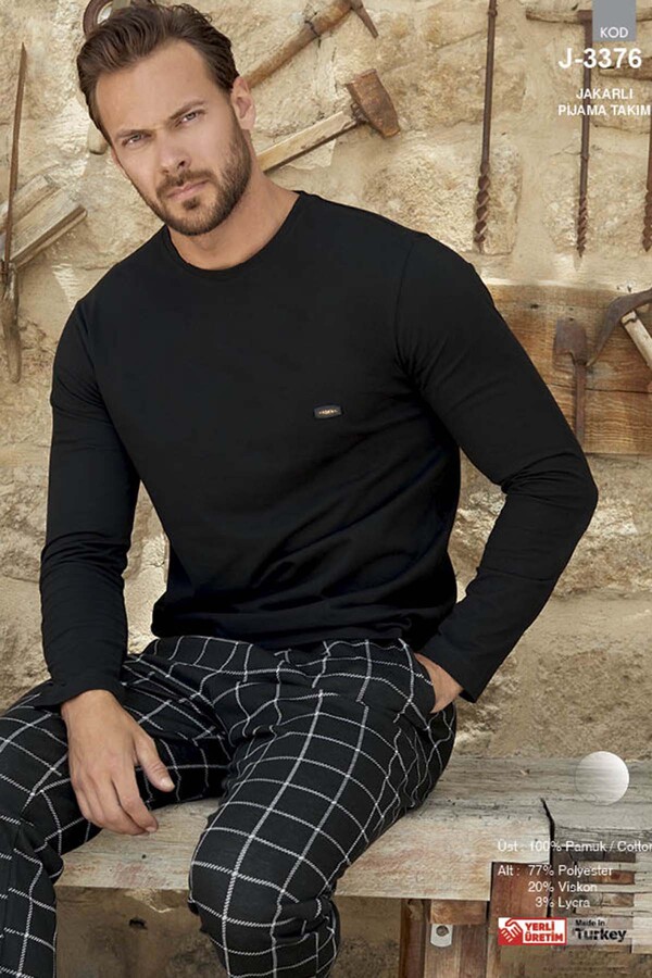 Erkek Aydoğan Jakarlı Pijama Takımı 3376 Siyah04