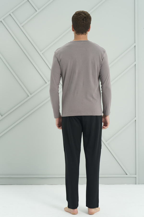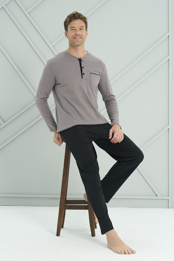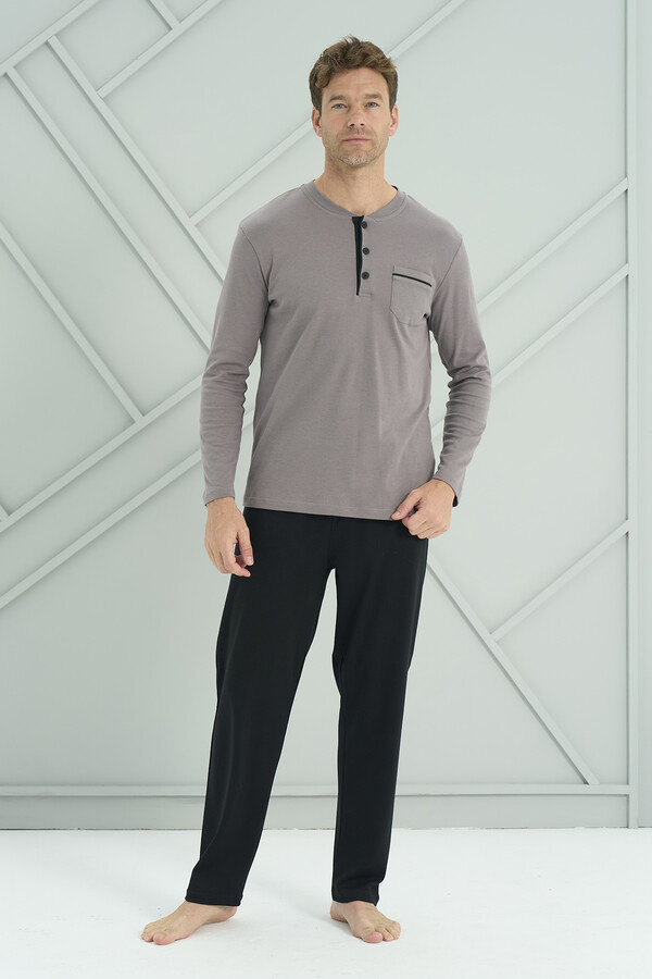 Erkek Interlok Penye Uzun Kol Pijama Takımı 2205 Gri01