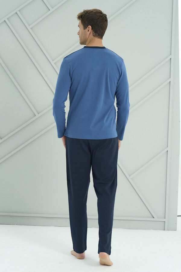 Erkek Interlok Penye Uzun Kol Pijama Takımı 2213 Saks