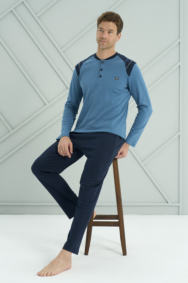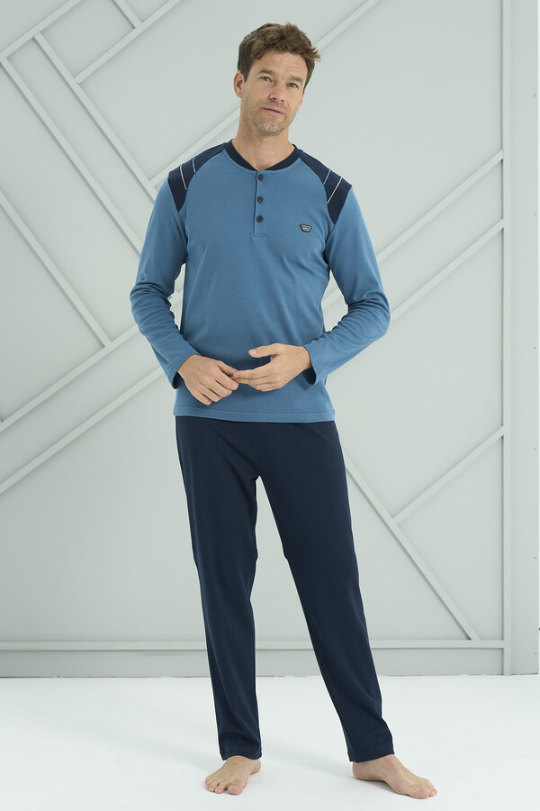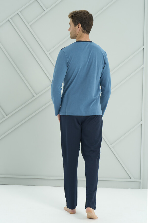 Erkek Interlok Penye Uzun Kol Pijama Takımı 2214 Petrol01