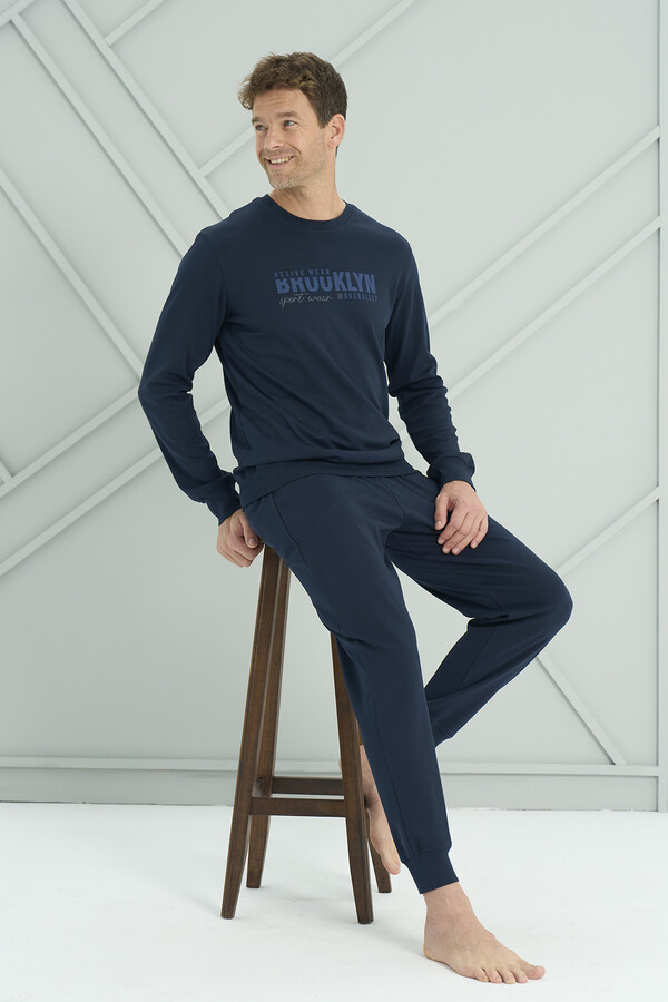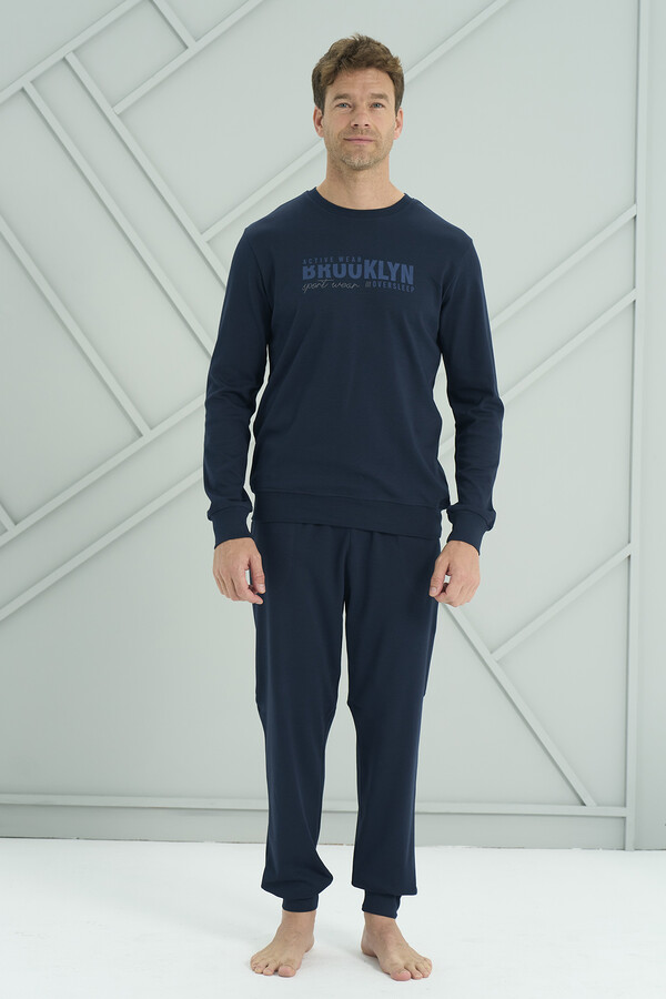 Erkek Penye Uzun Kol Pijama Takımı 2221 Lacivert