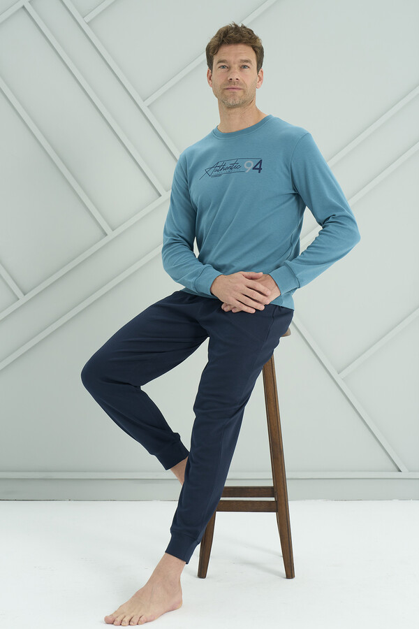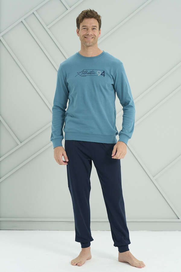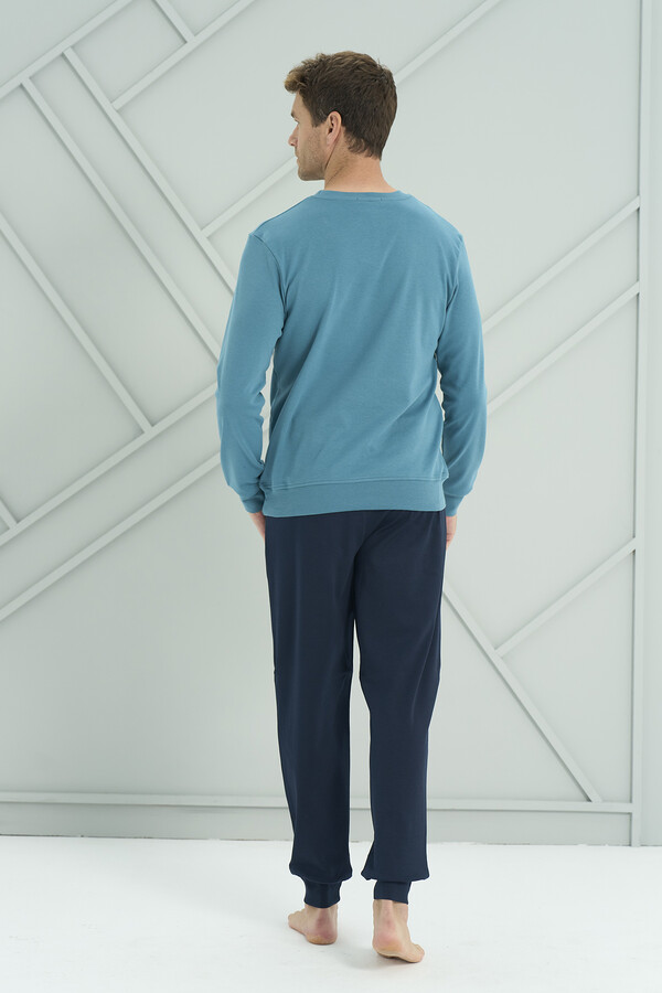 Erkek Interlok Penye Uzun Kol Pijama Takımı 2222 Petrol