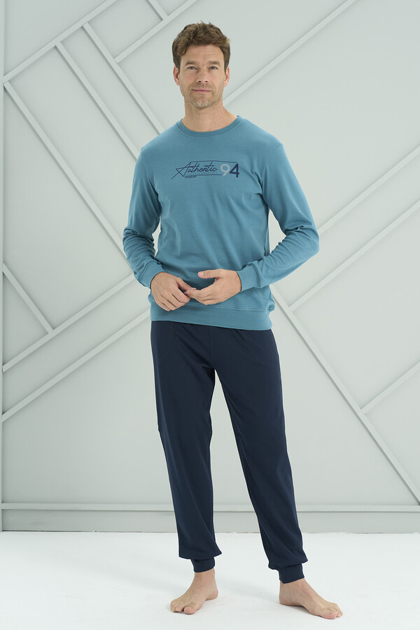 Erkek Penye Uzun Kol Pijama Takımı 2222 Petrol