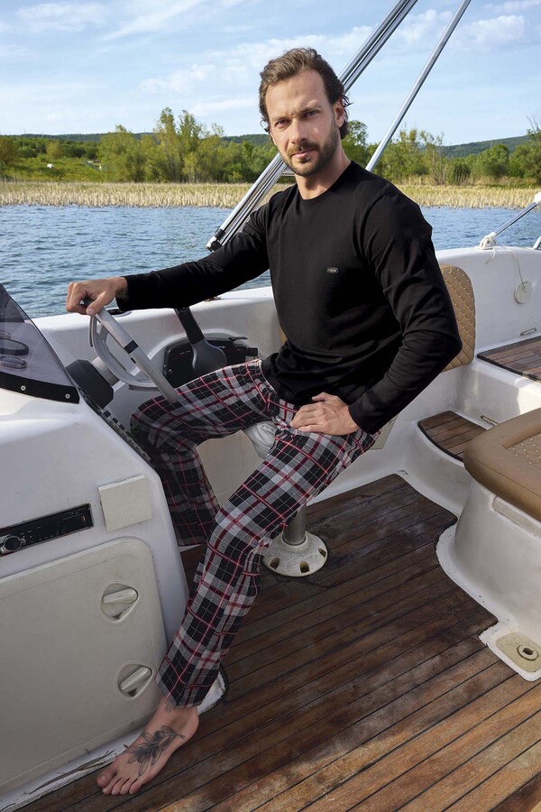 Erkek Jakarlı Uzun Kol Pijama Takımı 3451 Siyah