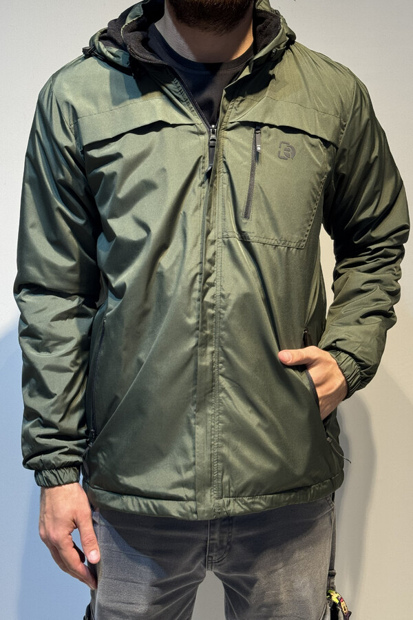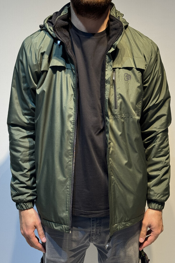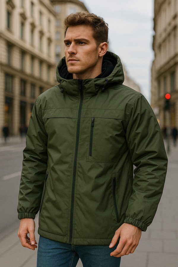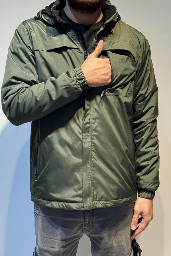 Erkek Kapüşonlu Cep Detaylı İçi Polar Kışlık Mont 2540 Haki