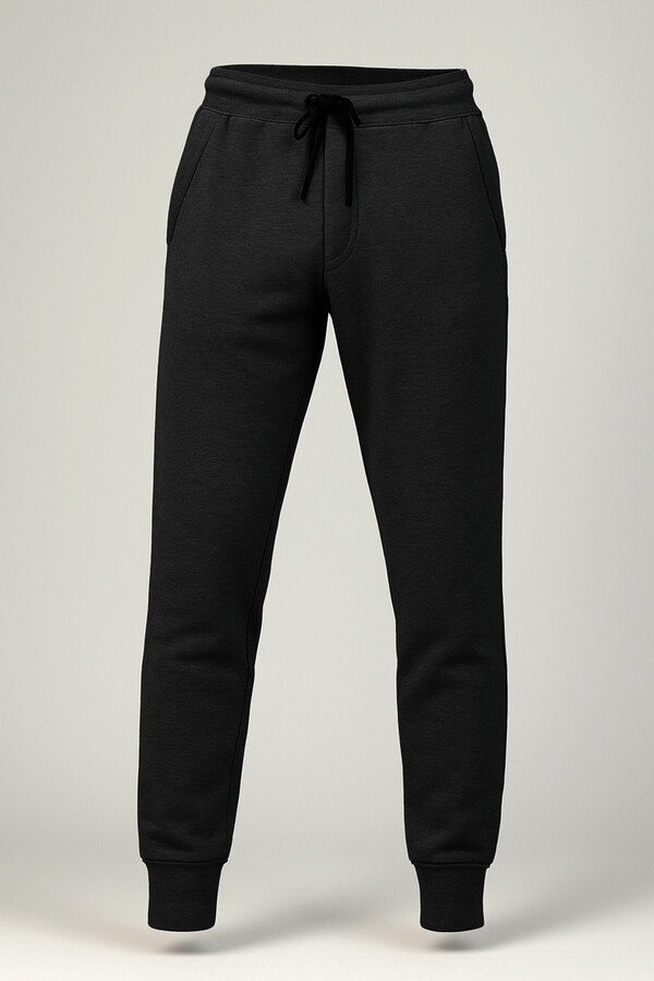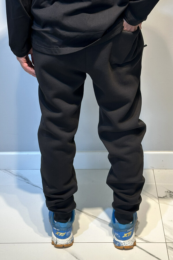 Erkek Paçası ve beli Lastikli Üç İplik Şardonlu Eşofman Altı 0341 Siyah