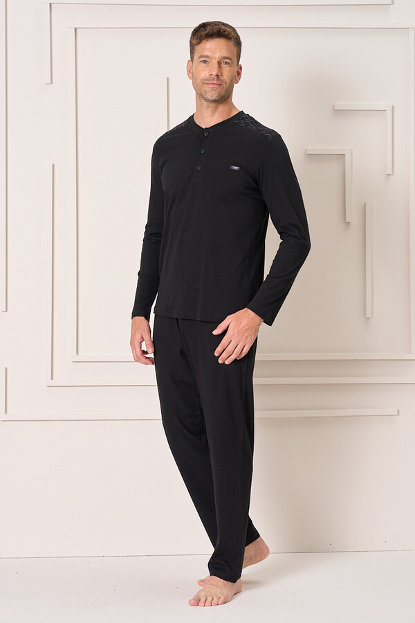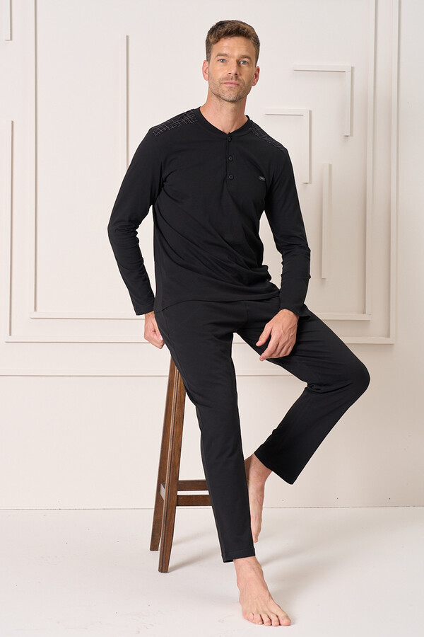 Erkek Pamuk Uzun Kol Pijama Takımı 4102 Siyah