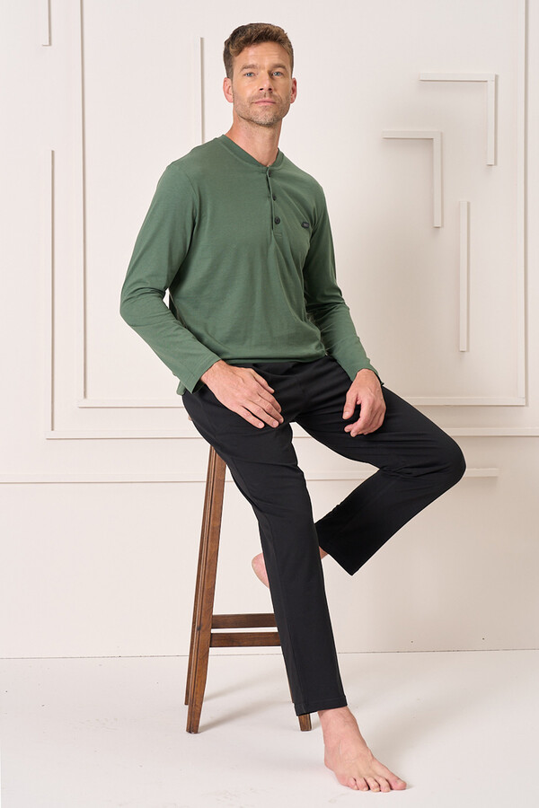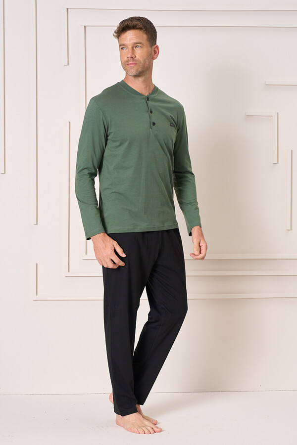 Erkek Pamuk Uzun Kol Pijama Takımı 4105 Yeşil
