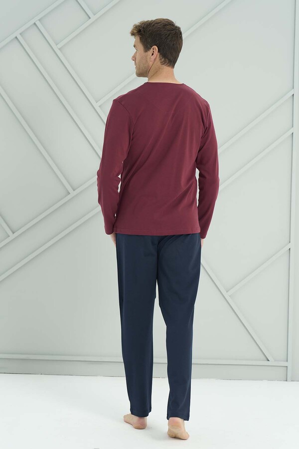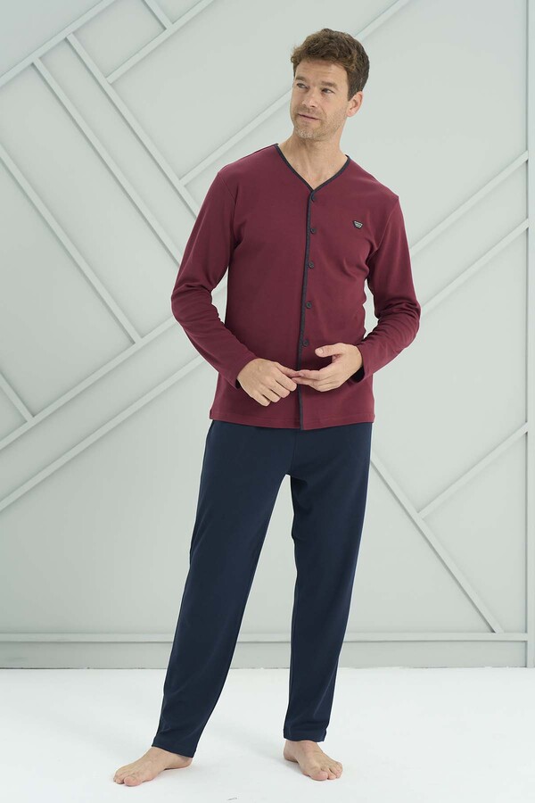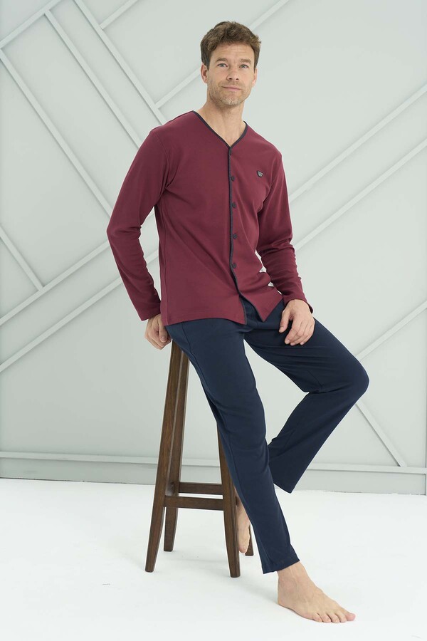 Erkek Penye Uzun Kol Düğmeli Pijama Takımı 2227 Bordo02