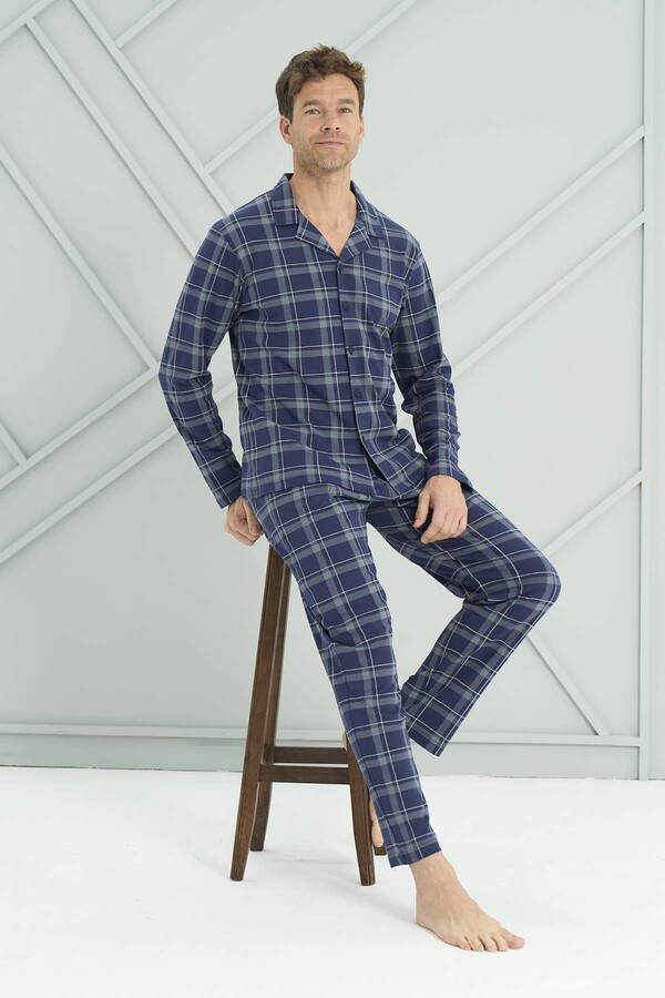 Erkek Penye Uzun Kol Pijama Takımı 2226 Lacivert06