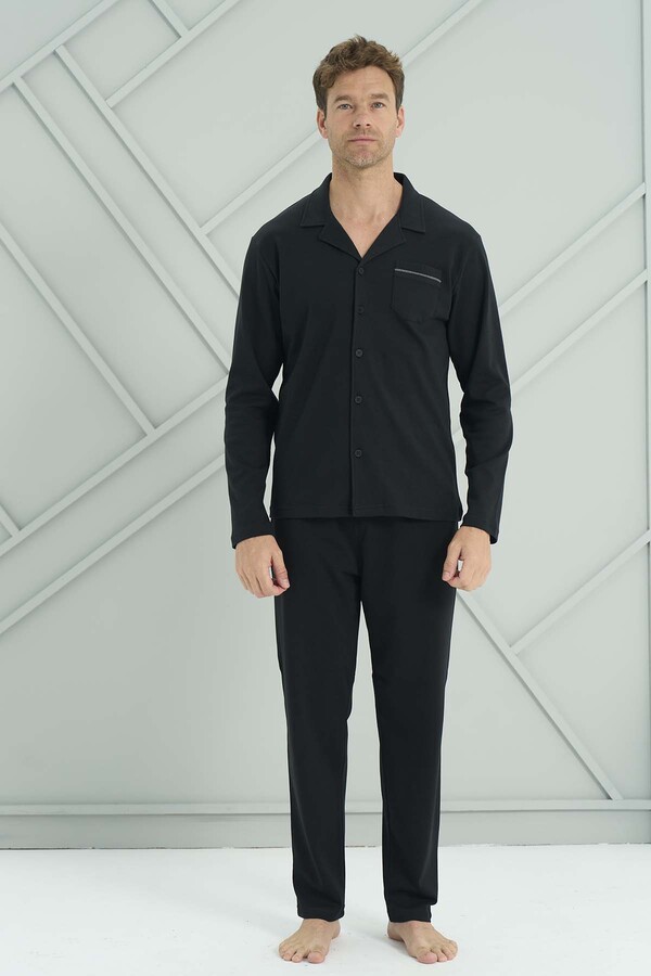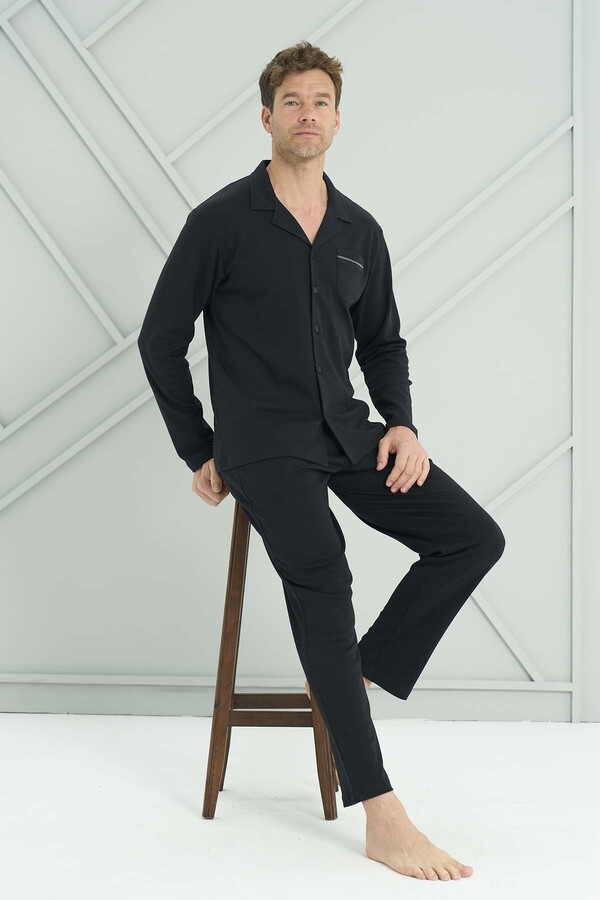 Erkek Penye Uzun Kol Pijama Takımı 2229 Siyah03