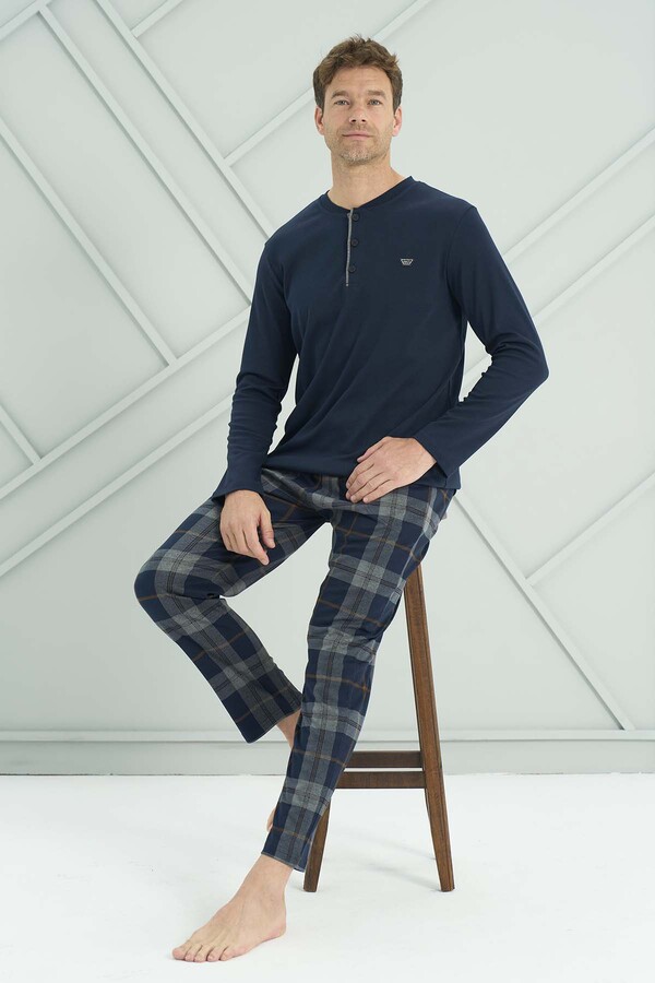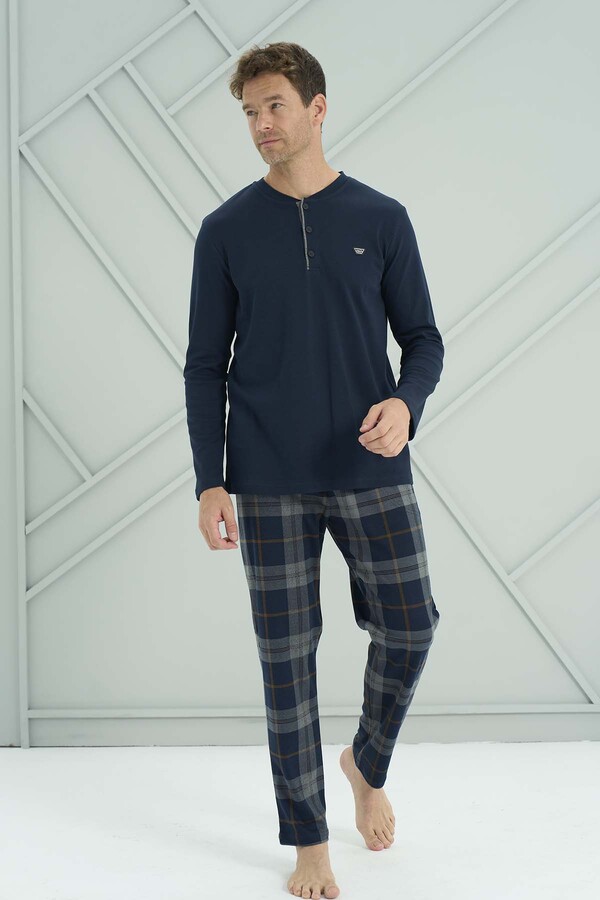 Erkek Penye Uzun Kol Pijama Takımı 2231 Lacivert05