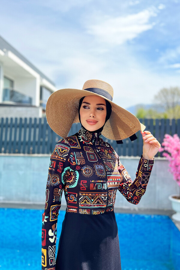 Ürün seti; fermuarlı üst tunik, boru paça tayt ve kapalı eşarp yüzücü boneden oluşmaktadır. Bu sayede hem denizde hem de havuzda kullanabileceğiniz bir üründür. Etekli tasarımı ile şıklığınızı korurken, fermuarlı olması sayesinde kullanım kolaylığı da sağlar.