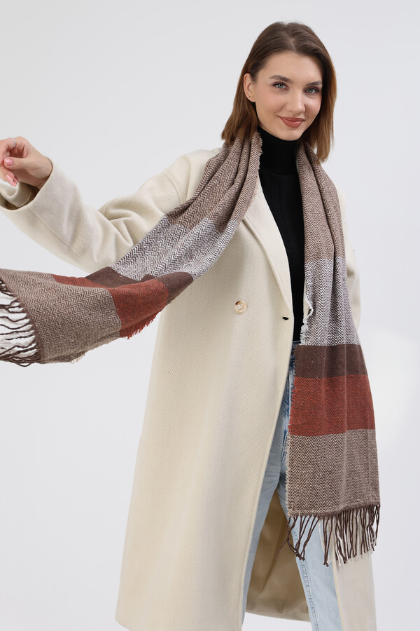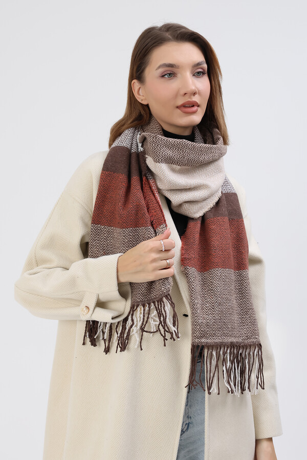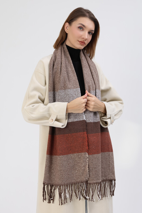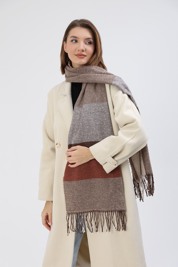 Herringbone Pattern Shoulder Shawl Scarf 60x190 cm 3807 Camel