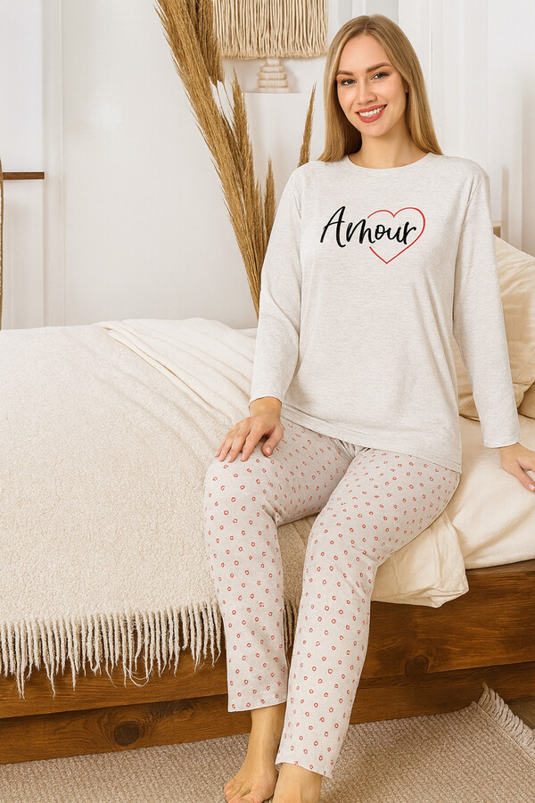 Kadın Kalp Desen Suprem Pijama Takımı 0472 Vizon04