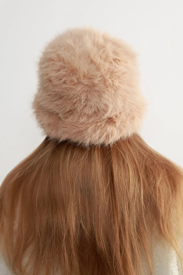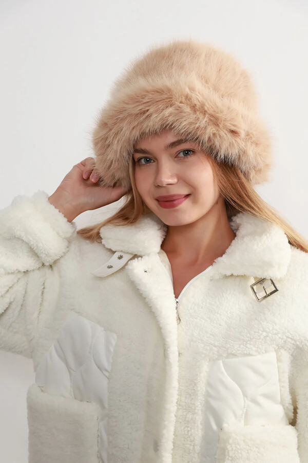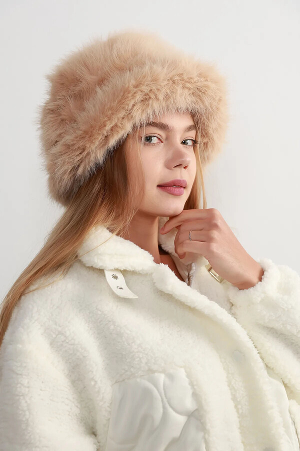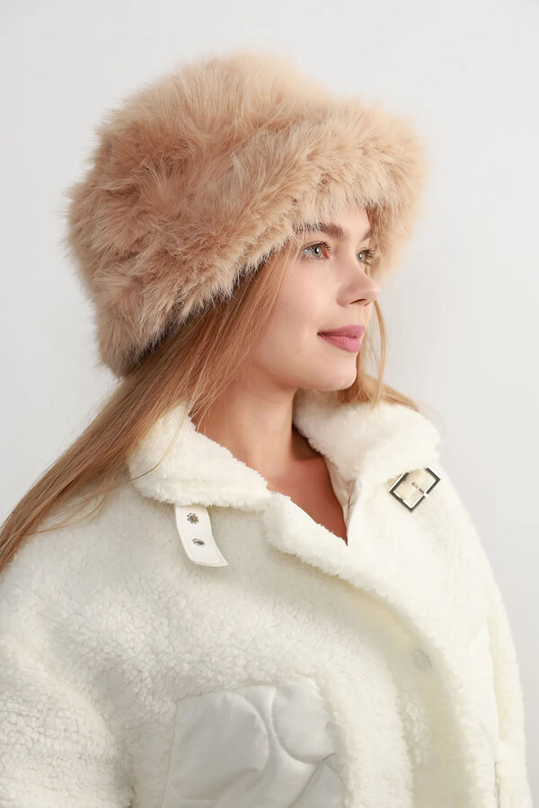 Kadın Kürklü Bucket Kalpak Şapka RKŞ-15 Camel