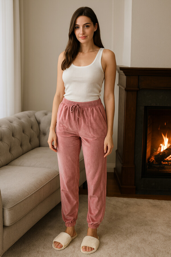 Yumuşak dokusuyla rahatlık sunan bu kadın kadife tek alt, günlük giyiminize şıklık katar.