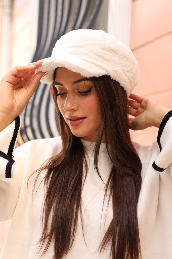 Kadın Peluş Kaptan Denizci Şapka RKŞ-05 Ekru