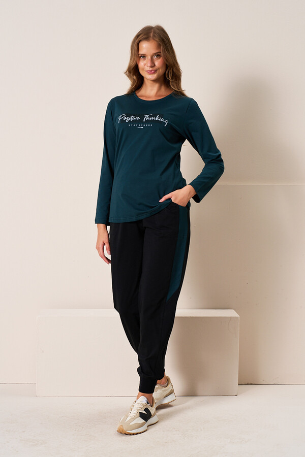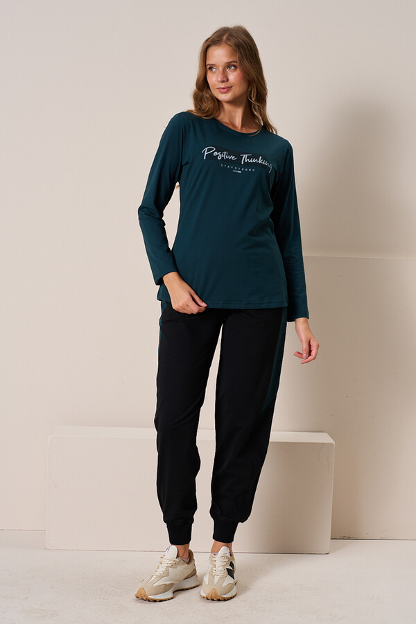 Kadın Penye Uzun Kol Pijama Takımı 3199 Petrol