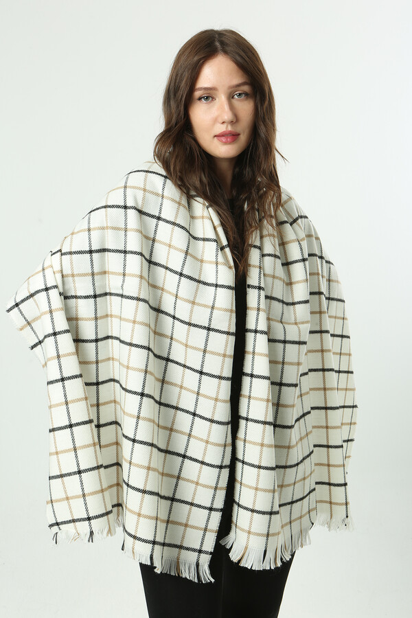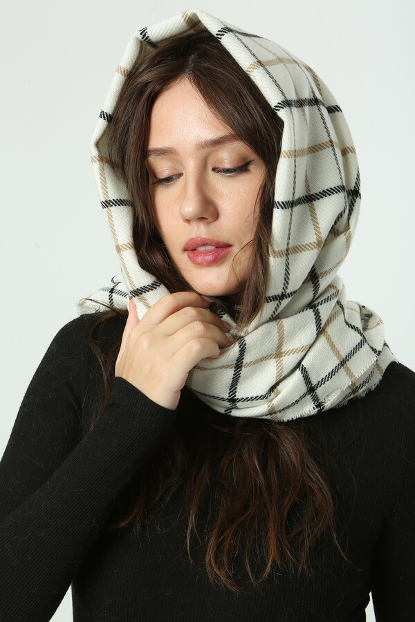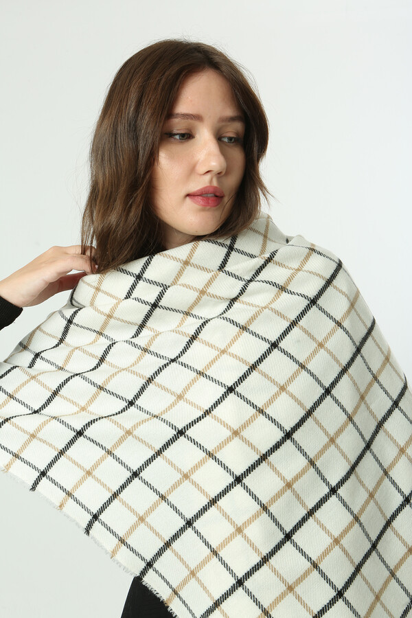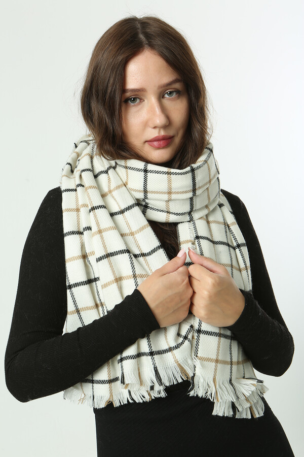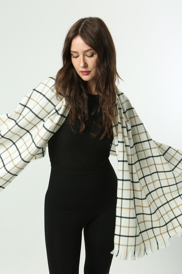 Kare Desen Atkı Omuz Şalı 70X180 cm 1282 Ekru