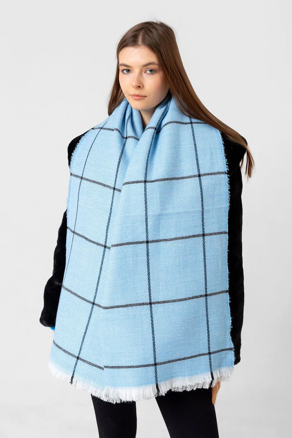 Kare Desenli Atkı Omuz Şalı 70X180 cm 1210 Mavi