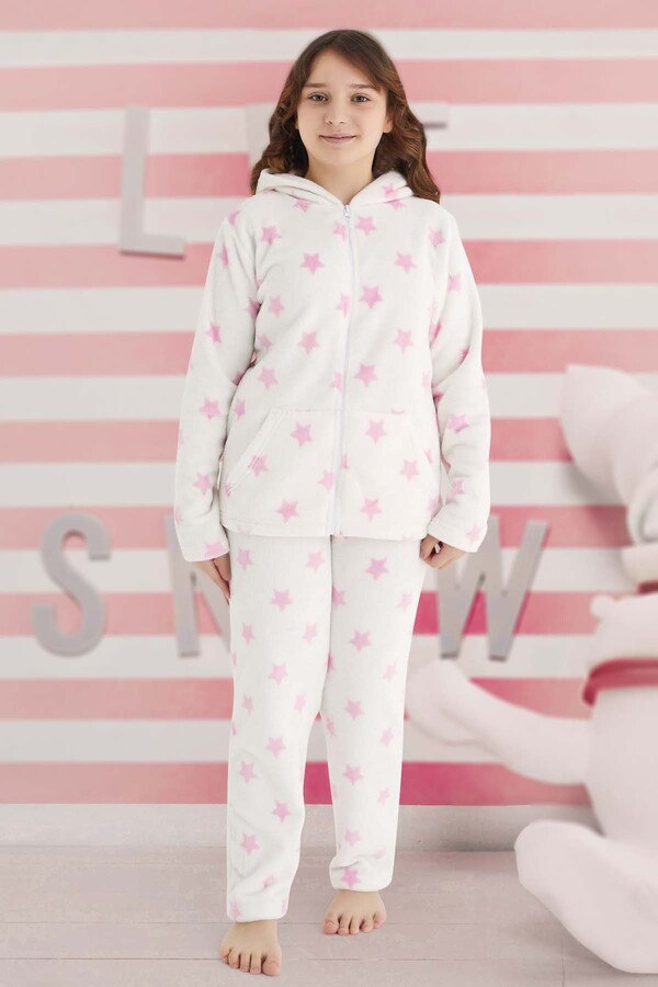 Kız Çocuk Desenli Polar Pijama Takımı 240521 Ekru01