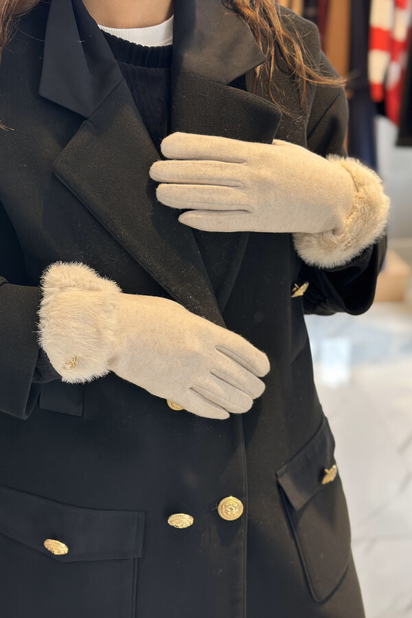 Kürk Detay Kadın Kaşe Eldiven ELD-29 Bej