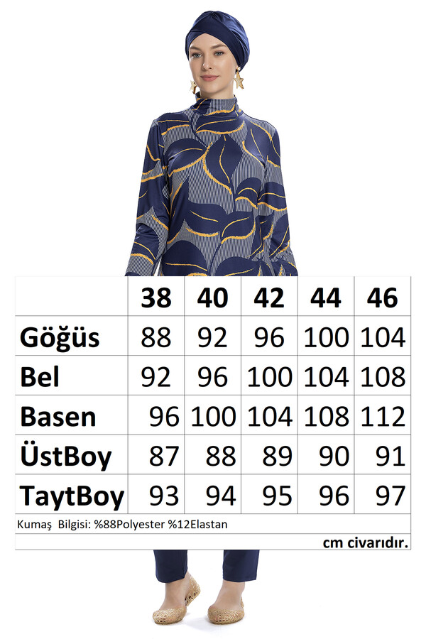 40Beden= Göğüs:92cm Bel:96cm Basen:100cm ÜstBoy:88cm AltBoy:94cm civarıdır.