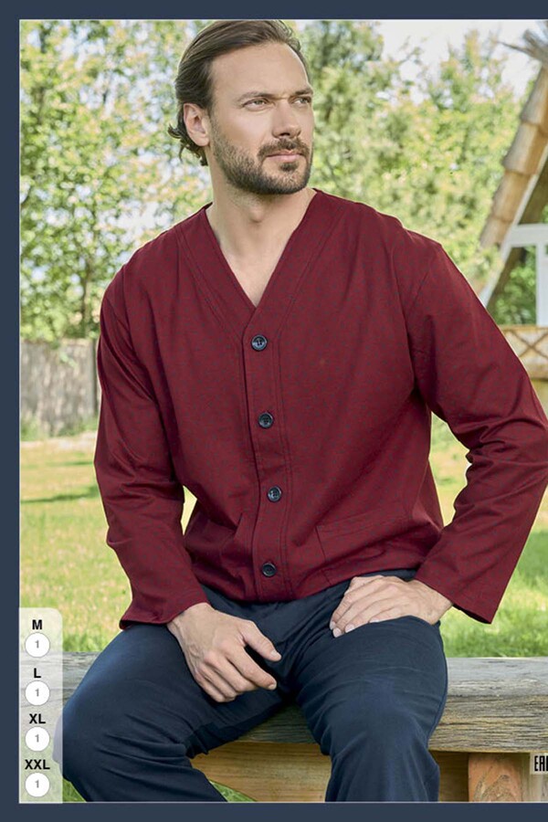 Men's Aydoğan Button-Front Supima Pajama Set 3469 Burgundy