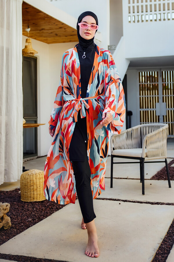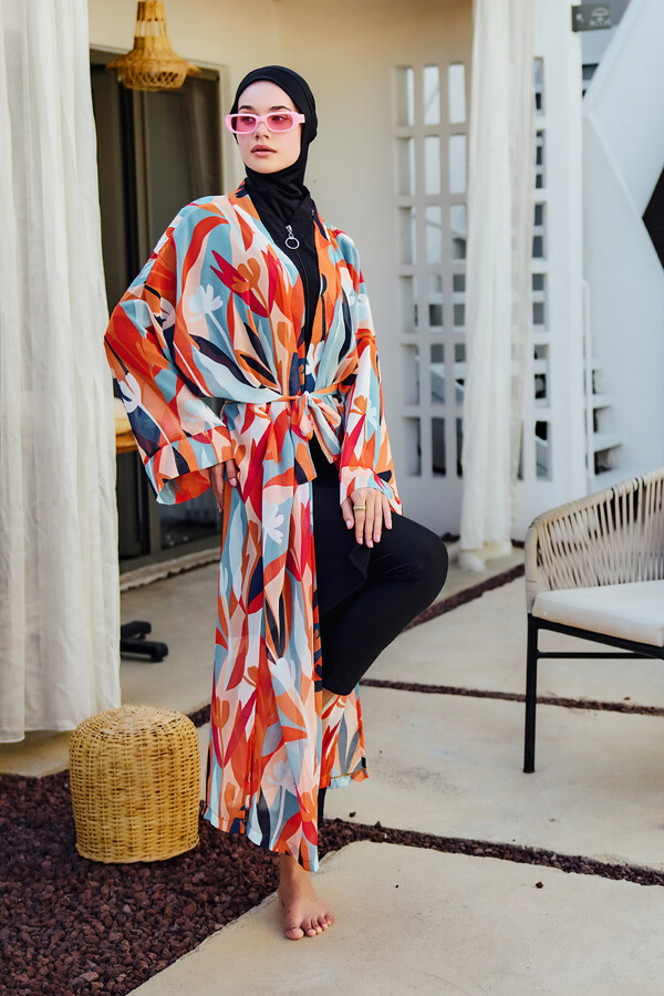 Modest Swimsuit Kaftan Kimono Pareo Orange RP027 Lotus