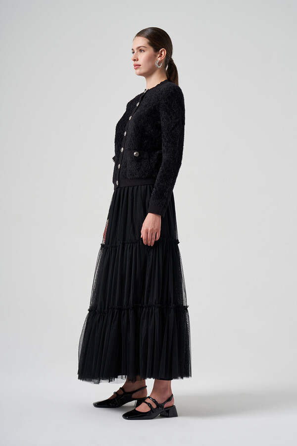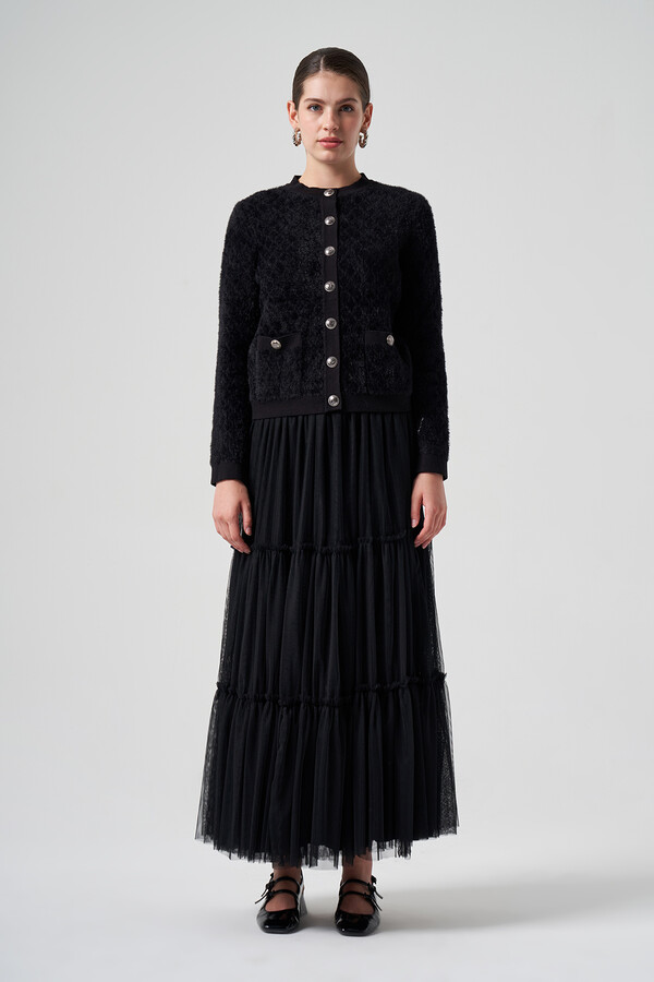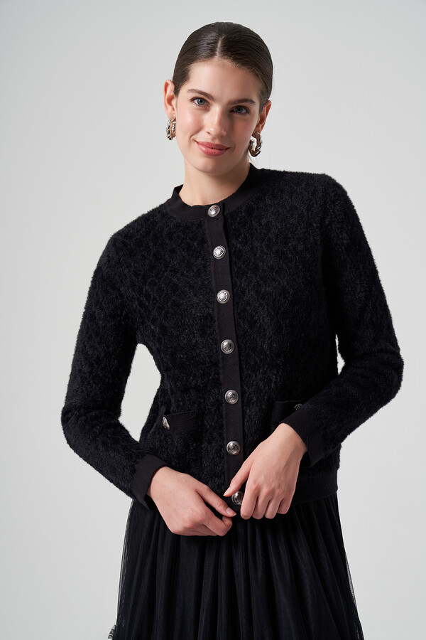 Nuss Knit Button Detail Short Cardigan 7001 Black