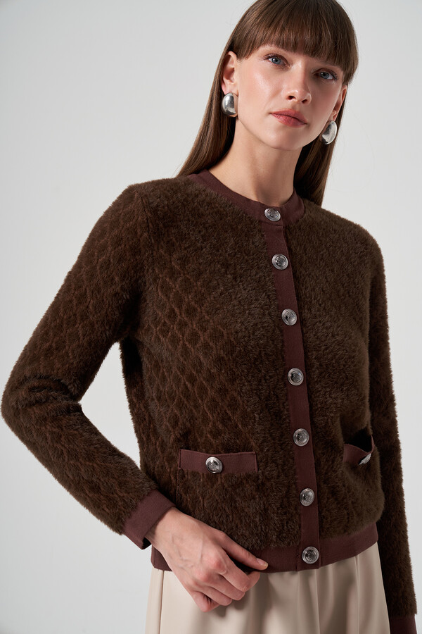 Nuss Knit Button Detail Short Cardigan 7001 Brown